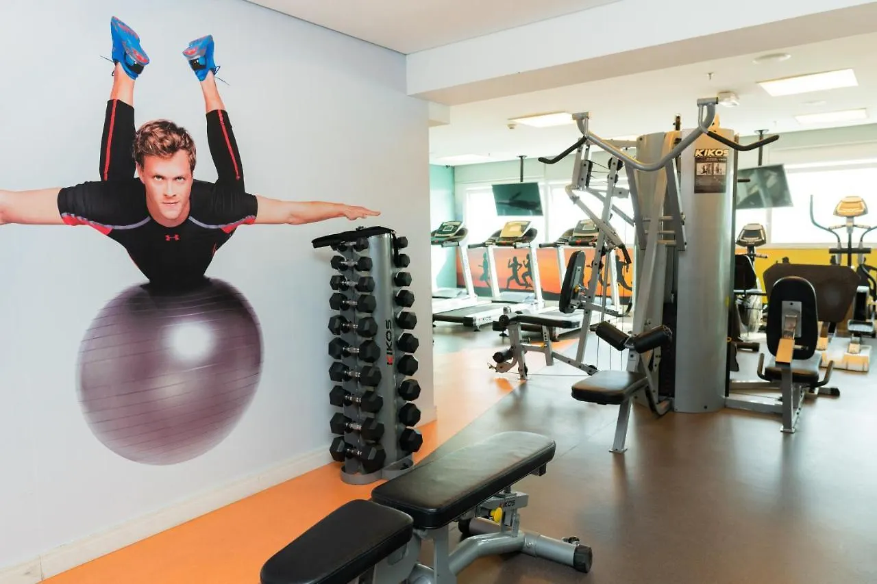 Tem centro de fitness com uma grande variedade de esportes.